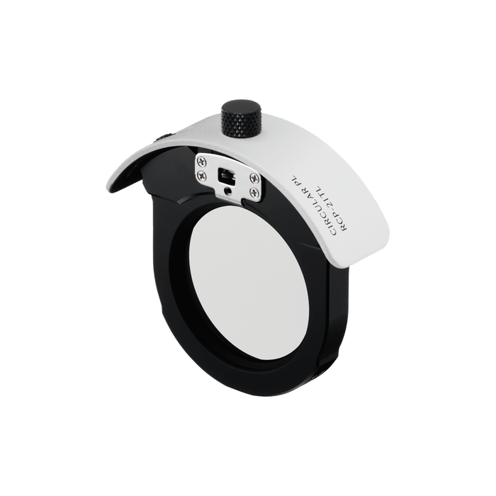 A drop-in PL filter that allows effect adjustment via dial while attached to the lens. It helps reduce reflections from glass and water surfaces and enhances contrast in landscape photography.